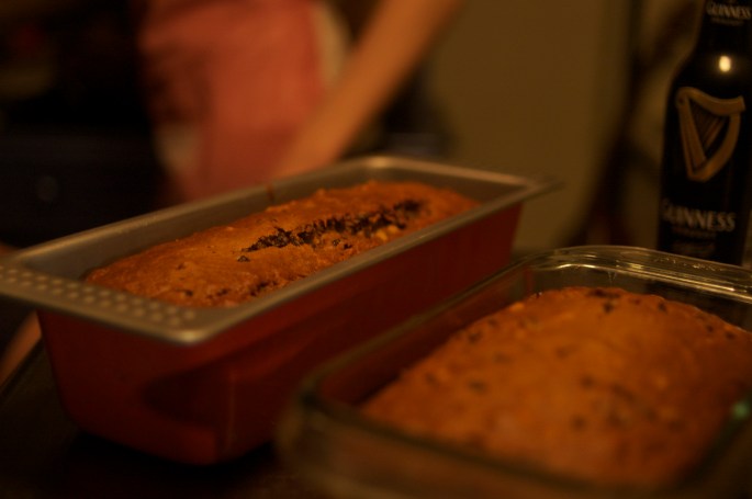We made a quick bread made of Guinness, ginger, rasin, and walnut.